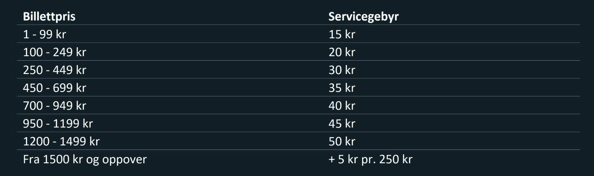 Det vil tilkomme servicegebyr etter Eventims satser: