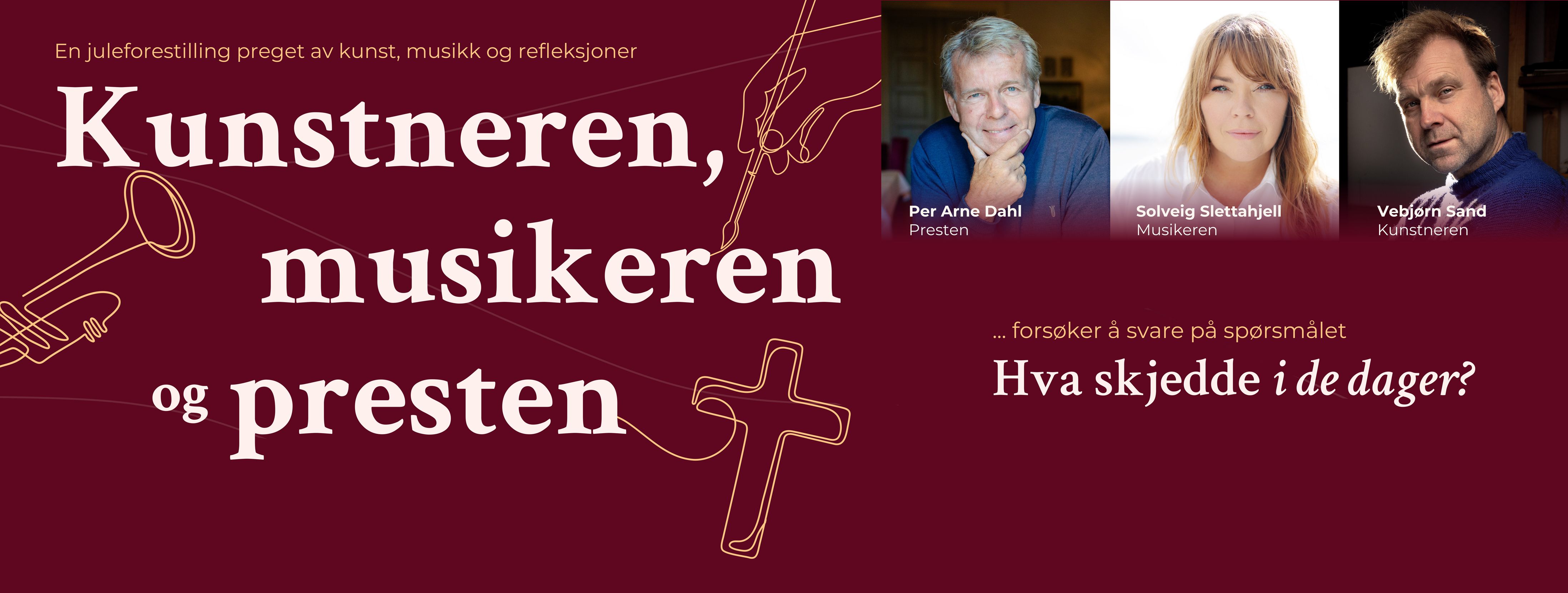 Velkommen til en forestilling som byr på variasjon mellom Vebjørn Sands presentasjon av kunst knyttet til julen, konsert med Solveig Slettahjell og refleksjonssamtale ledet av Per Arne Dahl.